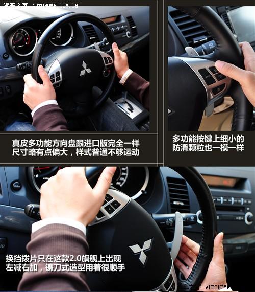 除了這兩樣標準配置以外,翼神還有兩個亮點,第一個即高配車型上的儀表盤,中央顯示屏色彩相當炫目,非常漂亮!不光是視覺效果好,可以顯示的行車信息也是相當的豐富,可謂應有盡有;第二個則是換擋撥片,在2.0升旗艦版車型上面提供了與進口Lancer EX相同的撥片,而且在實際使用中的反應很靈敏迅速。不過要想真正追求駕駛樂趣,顯然手動擋車型才能滿足。換擋行程很短,有一定的吸入感,既緊湊又不會生硬,這種感覺對于年輕人來說肯定夠誘惑,雖然說這款來自愛信的變速箱并不像CVT一樣是進口的。
