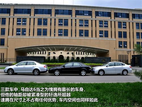 首先不一樣的不是尺寸,而是風格。這三款車分別代表了三種不同的設計取向。馬自達6是運動化的一個極端,軒逸屬舒適化的一個極端,而德系的速騰相比他們反而顯得更加中庸,算不上最運動,也算不上最舒服。