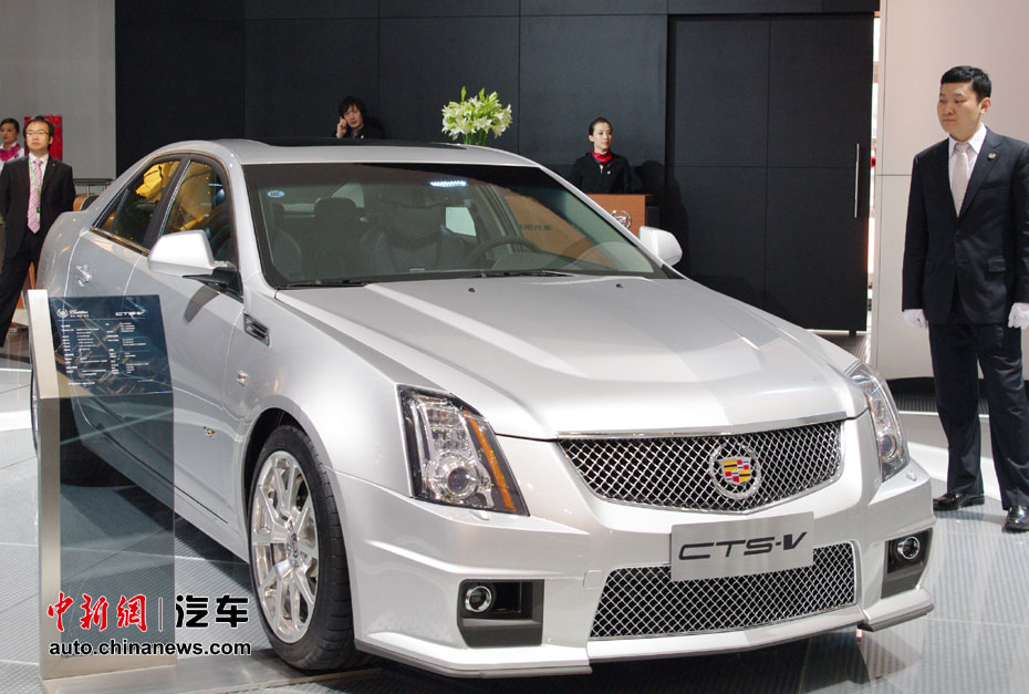 在人流如織的海外汽車巨頭的展館里,天價豪車成了當仁不讓的最搶眼明星,相形之下即使再靚麗的車模也黯然失色。圖為凱迪拉克CTS-V