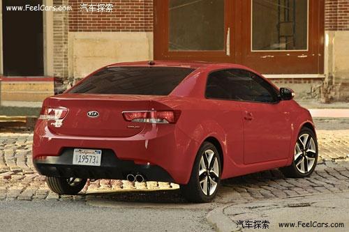 這款Forte Koup整體沿用了Forte動(dòng)感時(shí)尚的外觀造型,并且在流線上更加富有沖擊力。寬大的進(jìn)氣口以后后方的擾流板和雙排氣管顯示出了足夠的侵略性。