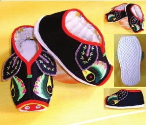 周阿姨店里的兜肚、針織品類都是她自己做的,繡花鞋是她70多歲的母親繡的,鞋底是周阿姨納的。周阿姨每天的工作強度看訂單的多少,忙的時候要做到晚上11-12點(是邊看電視邊做),做不完還要找?guī)褪郑幻Φ臅r候一上午就差不多能完成。