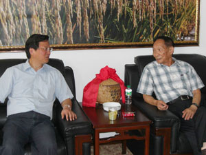 中新網6月23日電 據國家糧食局網站消息,6月14日,國家糧食局副局長任正曉拜訪了全國政協常委、中國工程院院士袁隆平,就袁院士在今年全國政協會議上提出的“關于加強對國家儲備糧的監管”提案的辦理,與他溝通情況,進一步征求意見。