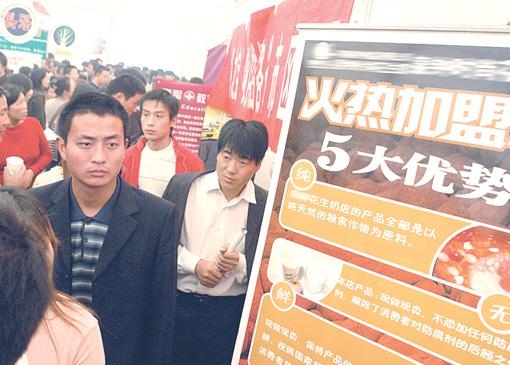 記者在采訪中發現,連鎖加盟“騙局”不在少數。剛畢業的劉平邦加盟“馬來西亞煎餅”,悉數交上2萬元后卻換來一個價值幾十元的爐具;在雜志上看到豬血里可以提煉SOD,而且公司還承諾回收提煉產品,溫先生交了5萬元加盟費,卻換來一大堆豬血……