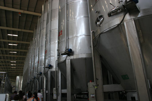 南山集團葡萄酒廠重達百噸的釀酒罐。