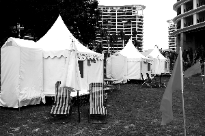 昨日,坐落在三亞一家酒店草坪上的帳篷客房。春節期間,該酒店和露營公司合作推出帳篷客房。新華社發