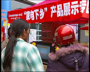 去年年底有一樣新東西被送到農村,就是家電,發起這項活動的是國家財政部和商務部,他們選擇了山東、河南、四川三個省,實施家電下鄉試點工作,具體點說,農民只要購買指定型號的電器,國家直接給予相當于銷售價格13%的補貼。