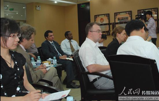 “新聞茶座”現(xiàn)場(chǎng)與會(huì)的中外記者 攝影/人民網(wǎng) 趙光霞