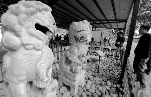 中山公園的蘭亭八柱和蘭亭碑、文津街老國圖的文源閣碑、中國對外友協(xié)院中的綺春園銅獅……三年前公布的“圓明園流散文物調(diào)查報告”統(tǒng)計,圓明園文物散落在北京地區(qū)有近百件,包括碑碣、石雕、石刻、玉器、瓷器等,集中在十余處單位和民宅。