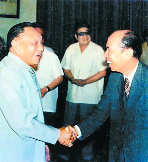 “我在上世紀(jì)50年代多次赴京參加國慶觀禮,與鄧小平見過面,但沒有機(jī)會(huì)交談。正式和鄧小平見面并談話是在1978年4月30日,那是‘五一’國際勞動(dòng)節(jié)前夕,鄧小平以國務(wù)院副總理的身份接待港澳同胞和海外華人華僑代表,在人民大會(huì)堂幾千人的晚宴上,我有幸被安排坐在鄧小平的旁邊。同桌的還有葉帥。”