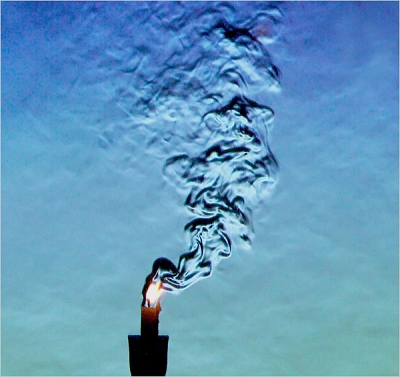 條紋攝影法是一種將氣體或液體中各區域的不同濃度用陰影表現出來的特殊技術。“在我的實驗室里,我們經常會用到這個技術,”Settles博士說,“比如在超音速風洞里,繪制飛行器周圍的震動波。”