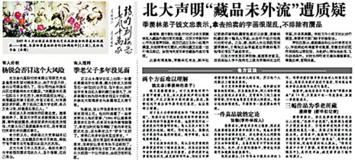 有媒體報道,季羨林的弟子、復旦大學歷史系教授錢文忠看了北大聲明后說,聲明無法說服他,因為季老是嚴謹慎重的人,沒有證據是不會說的。