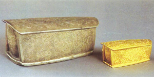 蔣老告訴記者,七寶鎏金塔是分開組裝的,由塔剎、山花蕉葉、塔身和塔座組成。他從塔身部位的側(cè)面一個(gè)破損的縫隙中,可以看見寶塔的木制結(jié)構(gòu)。目前,從X光探視圖分析,其中盛放著銀槨,銀槨內(nèi)還放著一個(gè)金棺,金棺內(nèi)可能有一個(gè)琉璃盒,里面應(yīng)該供奉著石碑上記載的:“圣感舍利十顆”、“佛頂真骨(釋迦牟尼)”、“諸圣舍利”。那么這批圣物究竟是從何而來的呢?