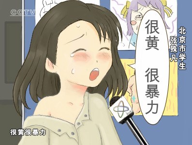 13歲女孩張殊凡在接受采訪時說:“上次我上網查資料,突然彈出一個網頁,很黃很暴力,我趕緊把它關了。”這句話掀起的“旋風”恐怕是央視所始料未及的。同時,它也將很×很××這一句式演繹到了登峰造極的地步。