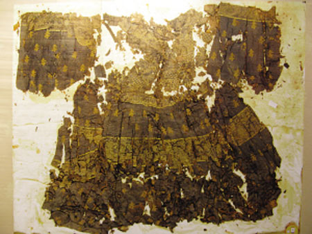 這件萬歷龍袍在地下埋藏了整整300年。1958年5月,考古人員打開了北京明十三陵中的定陵地宮,從明代萬歷皇帝朱翊鈞和他的兩個皇后棺木中出土了3000多件隨葬器物,有富麗堂皇的金銀器、價值連城的珠寶玉器、精美絕倫的青花瓷器和絢麗多采的羅紗織錦,出土的龍袍、皇冠和鳳冠更是引人注目。這件龍袍,是萬歷皇帝為了追求“天衣無縫”,而令天下能工巧匠打造的絕世精品,出土時部分仍然有色彩,紋飾還閃閃發光。