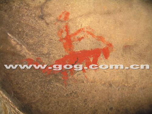 據介紹,去年12月16日,貴州省考古所所長助理李飛、研究員楊洪在普定縣考古所所長陳發武帶領下,到化處鎮考古時,無意中在該鎮中學對面的空山腳下巖石上發現一些紅色印跡,經仔細辨認后,這些紅色印跡被確認為巖畫。隨后,幾位考古專家又繼續往半山坡上尋找,共發現了10余幅巖畫。這些古巖畫中,許多畫清晰可辨,有栩栩如生的小狗,有耀武揚威騎馬的將軍等等。