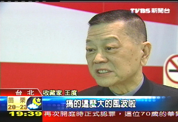TVBS報道稱,圓明園12生肖的銅像,至今還有5個下落不明,現在傳出其中的龍首,居然是在臺灣收藏家手中。收藏家王度說:“他(龍首收藏者)也是收藏家也是一個商人,1988年到1990年這個時候(買入),就是要看這個兔首跟這個,怎么樣以后他再做決定嘛,結果沒想到整個事情,演變成這個樣子。”