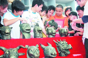 前段時(shí)間,法國佳士得拍賣行拍賣圓明園流失文物鼠首和兔首銅像,此事經(jīng)媒體報(bào)道后在全國引起巨大反響,也激起了長(zhǎng)沙師范學(xué)校師生的憤怒。“當(dāng)時(shí)關(guān)于十二生肖銅像的話題很熱,我覺得若是仿制出十二生肖銅像,豈不是對(duì)學(xué)生進(jìn)行愛國主義教育的好素材?”仿銅十二生肖獸首制作者的指導(dǎo)老師錢正財(cái)告訴記者。錢老師將這個(gè)想法跟自己的學(xué)生們一說,大家都很感興趣。于是他從所教的學(xué)生中確定12人,每人負(fù)責(zé)一個(gè)仿銅獸首的制作。