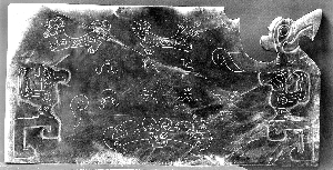 也有學者認為三星堆的“玉石文字”受甲骨文的影響,陳保亞認為這種說法會遇到困難,因為三星堆文化的“玉石文字”還處于圖畫和文字并存階段,在形態(tài)上比甲骨文要早,或者說要原始。