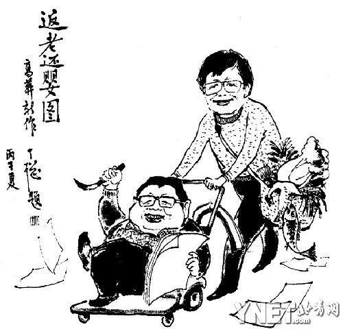 吳瓊向記者轉述的老人去世前的一些細節頗令人動容:81歲的沈峻老人一直像照顧孩子一樣照顧病中的丁聰。直到老人停止了呼吸,她覺得還有些事沒有交待清楚,于是又在丁聰衣兜里一邊放上了餐巾紙,一邊放上牙簽這兩樣丁聰出門必備的小物件。沈峻還給丁聰的衣服里揣上了高莽所繪的《返老還童圖》并附上親筆信,大意是“小丁老頭,我推了你一輩子,把你推到了最后,剩下的路該你自己走了,不過我們很快就會又見面的。”她最后又給丁聰衣襟里放上了老人生前最愛的幾樣零食:巧克力、花生米和咖啡,之后就決定不再來看丁聰了。