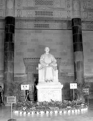 第四路段自下關(guān)中山碼頭至中央黨部、再至中山陵,采用汽車。5月28日12時10分,威勝艦抵達(dá)下關(guān)中山碼頭。靈櫬上岸,由北京杠夫抬入靈車,在場的國民黨中央委員以及孫中山家屬,均親手扶棺奉移。那輛加長的靈車是特地向美國納喜車行定做的。靈車沿新修成的迎櫬大道緩緩而行,下午3時15分抵達(dá)中央黨部,仍由北京杠夫?qū)㈧`櫬移入祭堂。