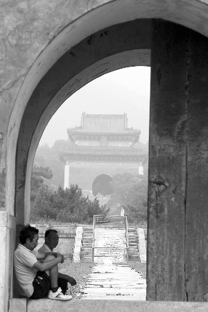 相比定陵的任你看個(gè)夠,永陵卻是神秘又神秘。在得到李德仲的允許后,司機(jī)驅(qū)車(chē)帶記者來(lái)到永陵。斑駁的路面,全是大城磚鋪砌,朱紅色的墻顏色已經(jīng)陳舊,木頭大門(mén)已見(jiàn)破損。攝影記者剛要踏進(jìn)大門(mén),一位師傅就板著臉喝止。他倚坐在門(mén)檻上,一臉威嚴(yán):“不能進(jìn),里面有探頭!”記者便乘機(jī)和他聊了起來(lái),他姓齊,是新一代的守陵人。從上世紀(jì)80年代開(kāi)始,他就擔(dān)任守護(hù)永陵一職,每天的生活非常簡(jiǎn)單,睜開(kāi)眼睛就是守在永陵的門(mén)口,偶爾聽(tīng)聽(tīng)收音機(jī)。齊師傅通常都是坐在永陵入口的青石門(mén)檻上,手里一個(gè)對(duì)講機(jī)。偶爾對(duì)講機(jī)會(huì)響起聲音,那是十三陵管理委員會(huì)通知他,有專(zhuān)家要來(lái)參觀了,做好接待準(zhǔn)備……不過(guò),相比定陵和長(zhǎng)陵,來(lái)這里參觀的人實(shí)在少之又少;大多數(shù)時(shí)間,老齊都是兩眼看著紅色斑駁的大門(mén),還有門(mén)檻、破碎不一的城磚鋪砌的路面。