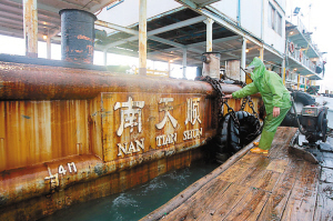記者看到,“南天順”甲板上整齊放置了很多設備,兩個巨大白色“箱子”尤其引人注目。隨船醫生黃耀平告訴記者,這是負責供氣、減壓的應急設施。根據水下考古程序,考古隊員作業出水后都需先進入減壓艙內進行加壓、減壓。此次為了打撈“南澳一號”,“南天順”配備了先進的設備和儀器,如甲板減壓艙設備一流,有可視屏幕,醫務人員可看到密閉艙內隊員的情況,也可通過電話與考古隊員對話交流。