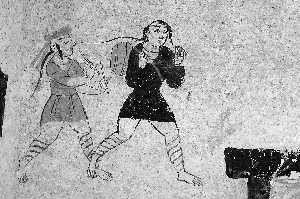 地埂坡墓群位于高臺縣河西村南3公里黑河南岸的戈壁臺地上,是河西走廊發(fā)現(xiàn)的又一處重要的魏晉時期墓葬群。該墓葬最大的“亮點”是:墓室內(nèi)有內(nèi)容豐富、技藝精湛的壁畫,表現(xiàn)了農(nóng)耕、畜牧、宴飲等內(nèi)容,出現(xiàn)了多個少數(shù)民族形象,這是以往河西魏晉墓中不多見的,為研究河西地區(qū)歷史、中西文化交流以及民族融合等提供了珍貴的資料。