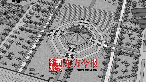 郭黛姮說:明堂建筑為一層建筑,根據遺址現場的考古報告顯示,明堂是中心柱和八邊形建筑。此次設計中,明堂將仍采用八角攢尖屋頂。