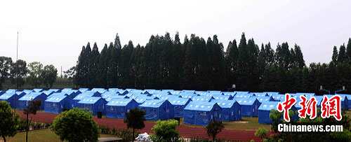 在集中安置點漢南中學,操場上已經(jīng)搭建起了一排帳篷,凌晨前轉移來的消泗村民正在有序領取食品和礦泉水。在各個教室里歇息的村民情緒穩(wěn)定,有的在靜靜休息,有的在小聲談說。