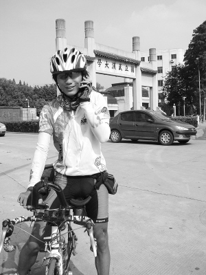 昨日下午3時30分,踏著自行車、身著騎行服的武大學生耿直終于抵達終點站——國立武漢大學的牌樓下。7月6日,耿直正是從這里出發,歷時54天,穿行10省(市)完成了萬里行程。