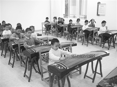 11 月13日,記者在漢陽玫瑰園小學南國明珠校區古箏室看到:一年級一班31個孩子(包括17名男生),在專聘老師的指導下,有模有樣彈著古箏。音樂老師指著坐窗口的一個小男生介紹說:“他叫小杰,可以說是最調皮的孩子了,但只要一上古箏課他就特別安靜而且好學,他都能完整彈好幾首曲子了呢!”