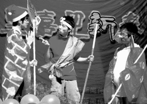 “幾天前,校園里就貼出了由文學院學生自編自導自演的山寨版《西游記》即將開演的消息,我們都是慕名而來,倒要看看這部所謂的“山寨劇”到底能把原著‘糟踐’到什么程度。”英語專業的劉同學說。