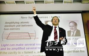 昨天,“霍尼韋爾·諾貝爾全球校園行”活動為東南大學請來了重量級嘉賓——諾貝爾物理獎獲得者,76歲的克勞德·科恩·坦諾奇(Claude Cohen-Tannoudji)教授。他以“光與物質”為主題,與東大學子分享了他的個人經歷和學術成就。在與媒體見面時,科恩教授還主動“報料”稱,他與祖籍江蘇太倉的華裔科學家、美國能源部部長朱棣文是好友。