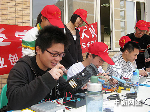 4月26日,浙江紡織服裝職業技術學院大學生就業創業協會組建青年志愿隊,和寧波大學理學院家電維修社聯合開展維修小家電活動。他們在校園內設攤,用一天時間免費為同學們修理電風扇、電吹風、MP3等各種小家電200余件。