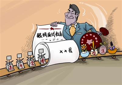 應當說,應試教育不是那一個地方的獨創,應試教育之害也是社會共知。但從新聞來看,沂水縣之所以要捧出“紅頭文件”的大棒來將應試教育狠抓落實,主要是基于 “今年沂水縣的高考嚴重下滑”的憂患意識。“紅頭文件”明確規定了改進的目標,即中考優秀率保持全市第一;本科進線人數、重點本科進線人數和萬人比全市第一。“紅頭文件”的分量,明顯體現在統一思想,確保貫徹執行之上。