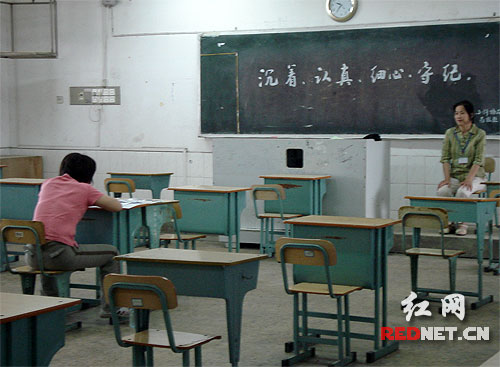 湘潭一中考點負責人介紹,劉華珍坐在了備用考室最中央的一個位置上,兩名監考老師中有一名校醫,另外醫院救護車也守候在考場外,幾名醫生也在緊張待命當中,應對可能的意外情況。