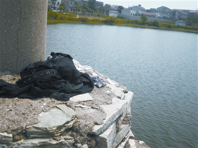 出事水塘距離六指中學(xué)校門不足400米。昨日上午,溺水學(xué)生的衣服和球鞋仍擺在水塘邊的石階上(見圖)。據(jù)了解,溺水學(xué)生趙某、王某均為該校九年級學(xué)生,15歲,六指街金咀灣人。