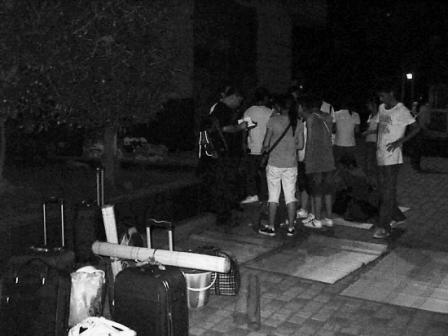 當時,大部分學生帶來的錢已經用完了。有的一整天沒吃飯,有的連回家的路費也不夠了。晚上10點半, 20多個學生蜷在中信國際大酒店停車場的綠化帶邊,打起了地鋪,身邊堆滿了大大小小的行李。14名女生和9名男生(除9人外,還有4名男生滯留其他地方)流落街頭。