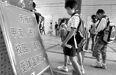 晚報訊 今天開始,滬上所有學(xué)校實行因病缺課情況每日報告制度。近日,各地學(xué)校陸續(xù)開學(xué),學(xué)生入校報名集中,市教委提醒各級各類學(xué)校,嚴格執(zhí)行入校體檢和每天晨檢制度、缺課報告、登記、隨訪制度,嚴把學(xué)校甲型H1N1流感疫情防控第一關(guān)。