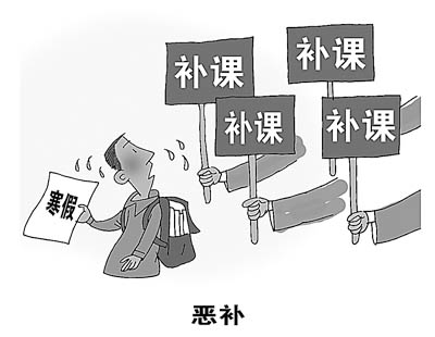據(jù)《瀟湘晨報》1月20日報道,一名學生在網上發(fā)出“反補課倡議書”,號召全國學校成立“中國反補課學生聯(lián)盟”。網帖中,這名學生講述了自己在寒假補課時的心情:“補課的重壓下,神經搖搖欲墜,做夢都夢到ABCD。”