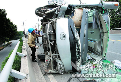 帶隊的胡老師稱,客車上有33名中南民大財務管理專業的大三學生,上午到武鋼實習后,中午乘坐租來的客車前往漢口的實習基地。目前,約有6人出現腦外傷、骨折等略重傷情,還有一些學生受輕微擦傷。