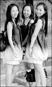 統(tǒng)一的湖藍色花苞裙,穿在一樣身高相貌、長發(fā)飄飄、笑靨如花的王安伊、王安冉、王安琪三姐妹身上,一股清涼之風撲向眼簾。