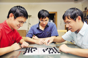 上學以后,施媽媽說,自己操的心反倒不多了。小學布置默生詞,她讓三個孩子互相默寫;檢查作業,她也不插手,讓兄弟仨互換檢查。老三葉誠輝在一旁插話說:“三胞胎的好處挺多的,學習上不懂的可以互相請教,生活中也比同學有更多的樂趣。”從小到大,三胞胎成績一直名列前茅,從沒有補過課,考第一名也沒什么獎勵。到了高中,他們的學習也很輕松,基本不開夜車。“三人行”還有一大好處是,學習上有不同見解,三人可以經常爭論。