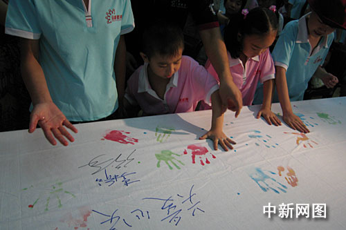 中新網(wǎng)武漢7月13日電 (段娟娟 艾啟平)13日下午,“關(guān)愛心靈、健康成長(zhǎng)”——關(guān)懷受艾滋病影響少年兒童第二屆夏令營(yíng)在武漢舉行開營(yíng)儀式。開營(yíng)式上,小營(yíng)員們舉行了“心連心”結(jié)對(duì)互助留簽名手印活動(dòng),并得到了贈(zèng)送的書包。