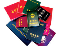 說著,周女士拿出來大小不一、顏色不同的證件十余本,摞在一起足有20厘米高。記者看到,里面除了幾個專業證件,還有“涉外秘書資格證”、“廣告從業資格證”、“健美操證”等。但諷刺的是,她現在從事的工作卻和其中任何一個證書都沒有關系。
