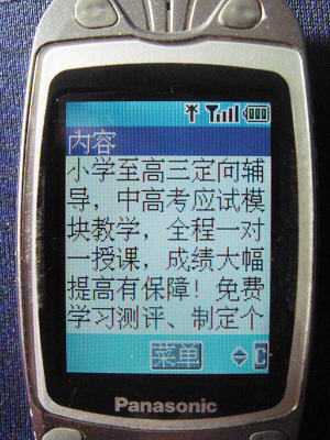 劉女士的孩子在紅橋區實驗小學上五年級,她最近經常接到提供寒假輔導的短信。記者按照她短信中的號碼撥通了報名電話,自稱是某著名培訓中心的“張老師”介紹說:“我們能提供小學一年級到高三各學科的定向輔導,尤其是針對中高考的學生。”培訓地點在河西區的一棟寫字樓內,老師在一個大辦公室分割成的若干格子間內對學生進行一對一授課,還可以針對不同孩子制定特殊的輔導方式。