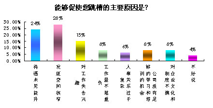 隨后的調查也體現了這一觀念,28%的受訪者最不滿當前工作“發展空間狹窄”,24%的人群表示“待遇未見提升”,另有15%的人群選擇“對工作失去興趣”。