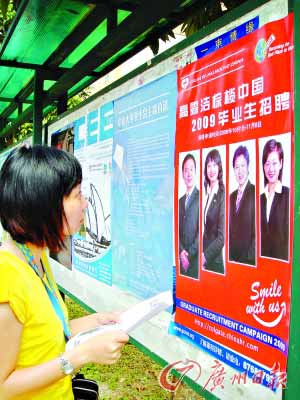 “壓力確實比往年要大。”中山大學就業指導中心黃勇平告訴記者:“大型企業該來的基本都有來,招聘人數和規模也差不多。不過中小型企業受金融海嘯影響貌似比較嚴重,來的比往年要少,即使來了,招聘規模也有減少。”