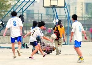 放暑假了,一群中學生在球場上盡情玩樂。時報記者 巢曉 攝