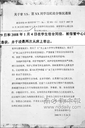 廣州大學(xué)城某工業(yè)大學(xué)通報(bào)處分了一對學(xué)生情侶